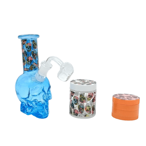 5 INCH SKULL BONG GIFT BOX SET WITH BONG, GRINDER, AND STORAGE CONTAINER 6 PIECE– BLUE – ARB232
